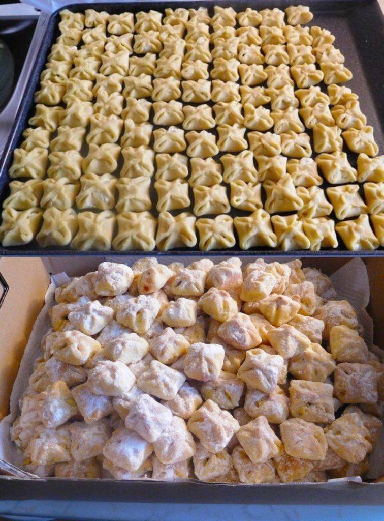 Zutaten: 400 g Weizenmehl 50 g Zucker 250 g Butter eine Prise Salz Zitronenschale 3 Eigelb 3 El lauwarme Sahne 30g Hefe 1 El Zucker etwas lauwarme Milch Geschmolzene Butter mit Rum zum Bestreichen der kleinen Kuchen. Die Hefe mit Zucker verrühren, etwas Milch hinzufügen und gehen lassen. Dann mit den restlichen Zutaten vermischen und … Read more