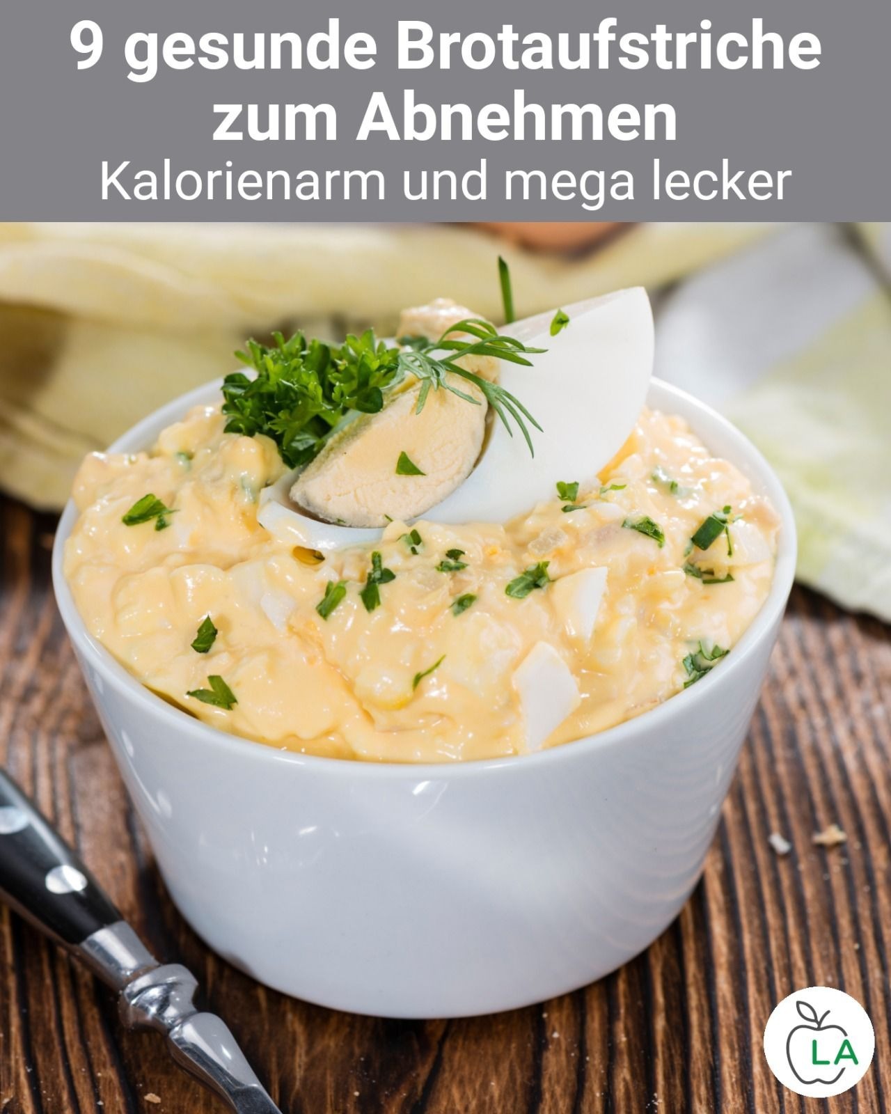 Auch Ei-Aufstrich ist ein richtiger Klassiker. Dieser ist durch den Mayonnaisegehalt aber meist kalorienreich. Diese Mayonnaise sparen wir uns, indem wir als Basis körnigen Frischkäse verwenden.